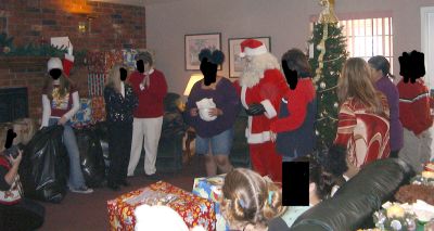 High Pointe Christmas Party A small,but impressive,contingent of Chevies met at I-35 and N.E.23rd Street on Sunday, December 21 to tour out to High Pointe residential care facility. Our cars are a popular part of the annual Christmas Party held for the young patients there. It was a perfect day for the short cruise out N.E.50th Street to the facility. We enjoyed visiting with anyone interested in the cars, sampled the refreshments and watched as Santa passed out gifts to the residents. Richard & Linda Bahr, Curtis & Kay Welch, Rudy & Gloria Escalera, Bill Washam, Ken & Cecilia Monroe, True Osborne, Mike & Carole Smith, David & Mahala Jones and Johnny Hays brought nine cars.